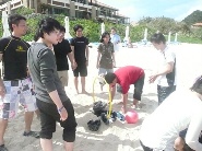 普段あまり関わらない方と一緒にチームを組んでいたので、最初は緊張していましたが、 チーム全員で叫ぶ!砂浜を駆ける!などなど、砂浜ならではの自由なアクティビティを楽しんでいくことで、 チーム内の雰囲気もひとつにまとまっていくのがわかりました。